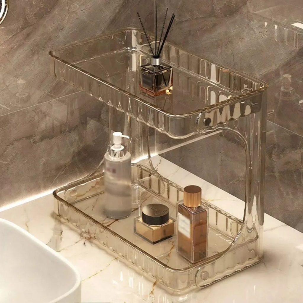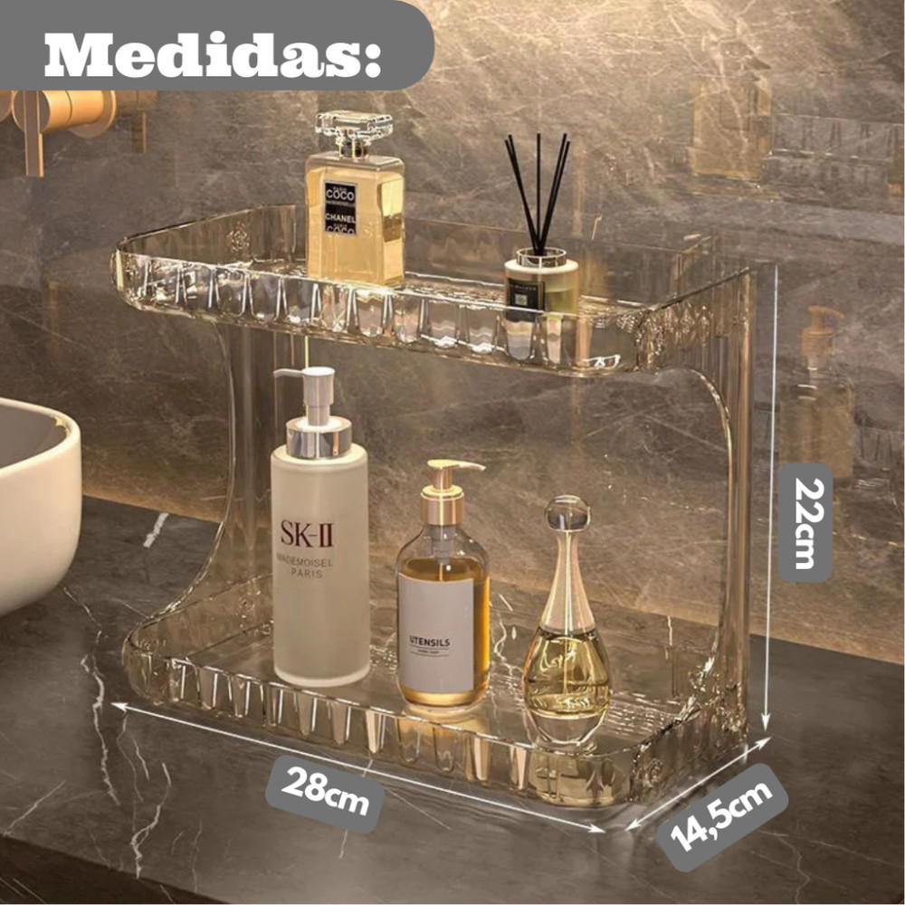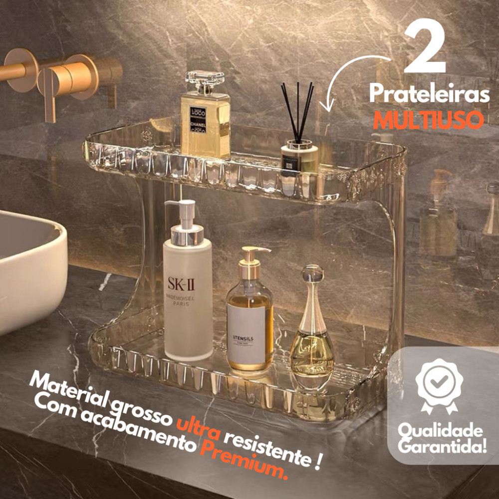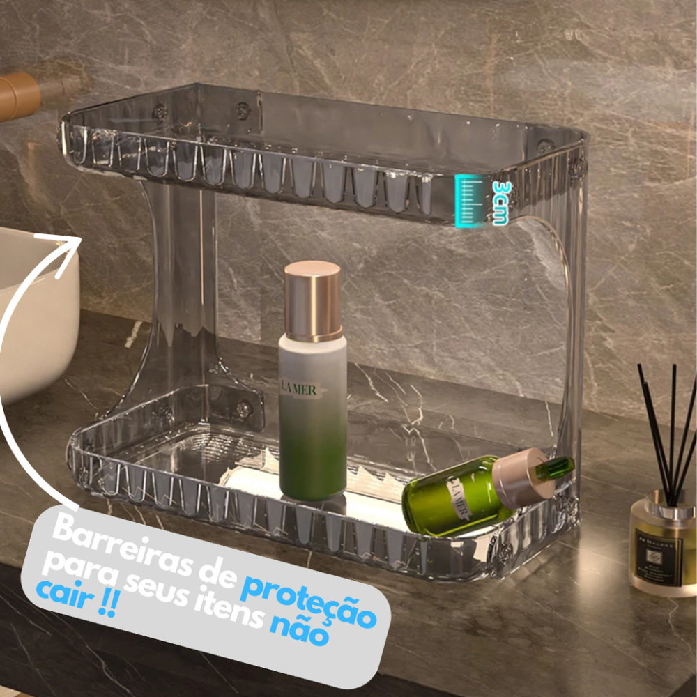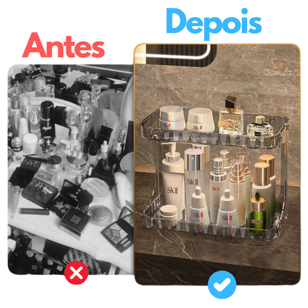 Se você sente que sua bancada, penteadeira ou banheiro vivem bagunçados, essa prateleira organizadora é a solução prática e elegante que faltava.